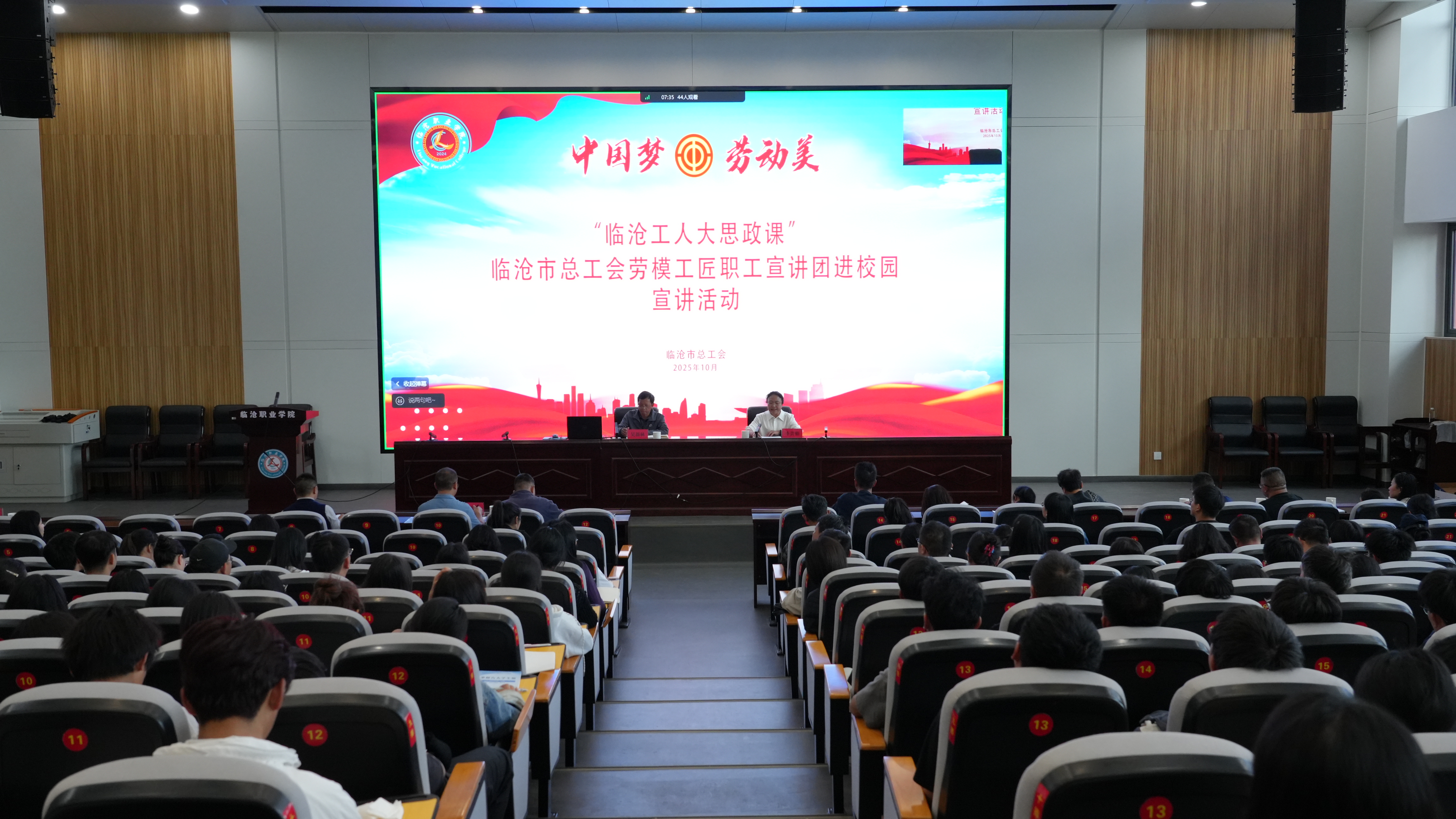 2025年10月29日,临沧市总工会“劳模工匠职工宣讲团”走进beat365唯一官方网站,开展“弘扬劳模精神、劳动精神、工匠精神”主题宣讲活动。活动以线上线下结合方式覆盖全校1700余名师生。
