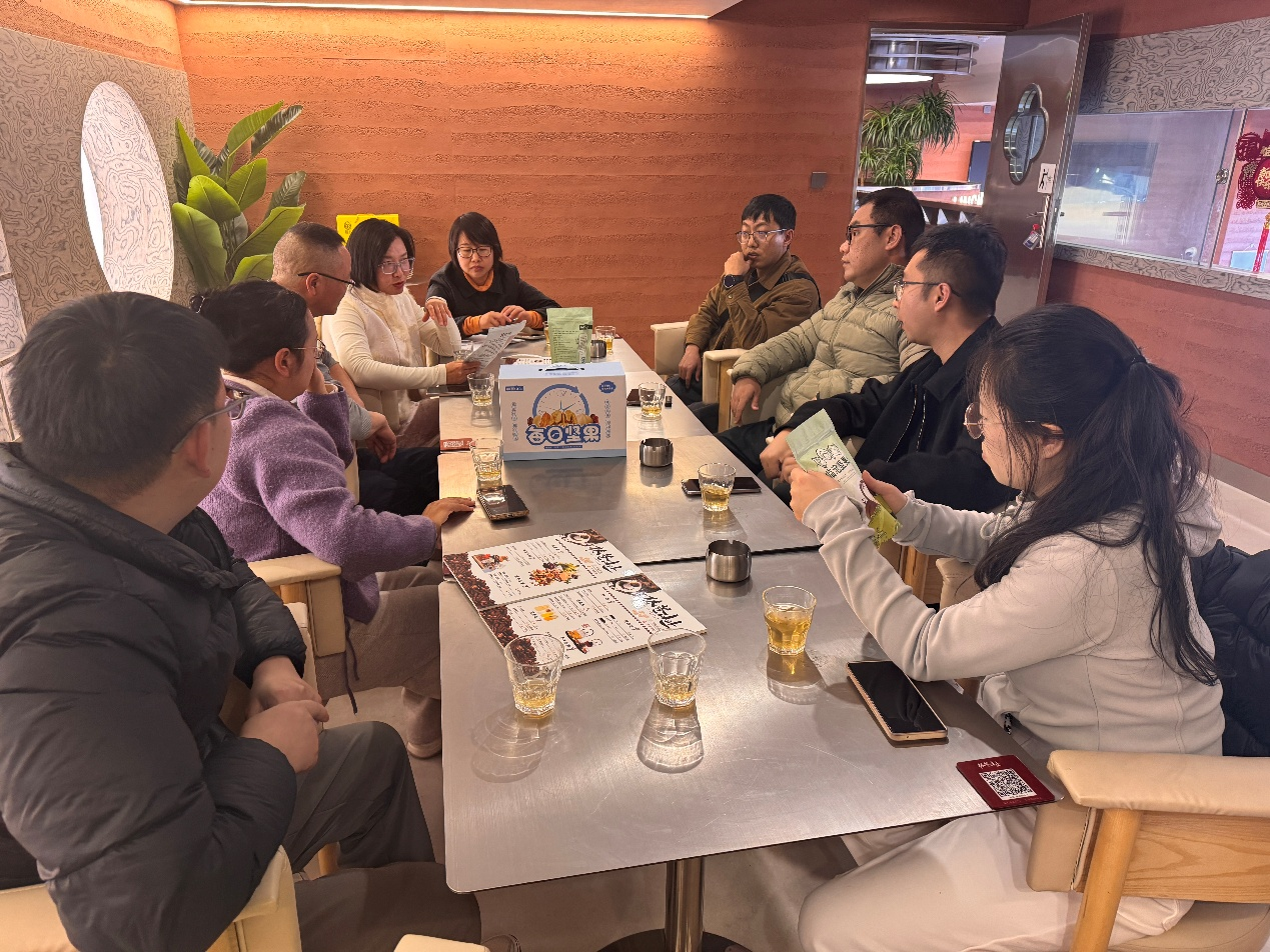 调研伊始,在王星皓、徐守志总经理的引导下,调研团队实地参观了林苍山上茶咖空间门店的产品展示区,企业相关负责人详细介绍了茶叶、坚果等特色农产品的加工工艺、产品系列及市场布局。从传统茶品的精制加工到坚果深加工衍生品的创新开发,从产品包装设计到品牌推广策略,企业方逐一进行展示讲解。调研团队认真聆听介绍,就产品研发中的技术难点、原料选材标准、产业链延伸方向等问题与企业负责人展开互动交流,深入了解企业在产品创新中的实践经验与市场需求导向。