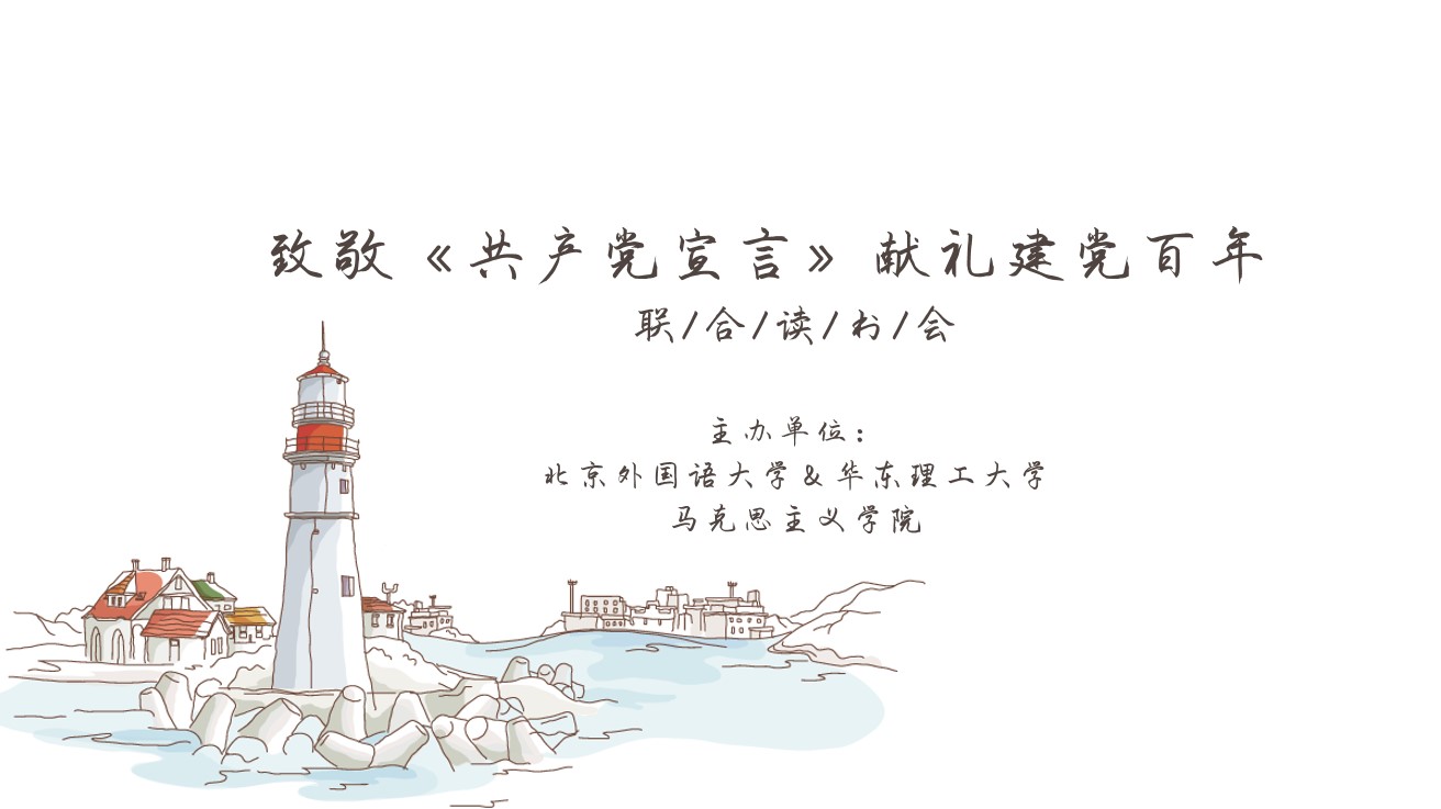 3月6日,必赢国际437官网联合华东理工大学必赢国际437官网,以腾讯会议的方式在线举办了“致敬《共产党宣言》,献礼建党百年”读书会活动。本次读书会以《共产党宣言》为基础阅读书目,旨在促进同学们读原著、悟原理、明党史的热情。增进同学之间的思想碰撞、创新学术思维、加强校际学术交流。会议上,来自必赢国际437官网和华东理工大学必赢国际437官网的老师与同学们,围绕会议主题进行了热烈而充分的展示和交流。