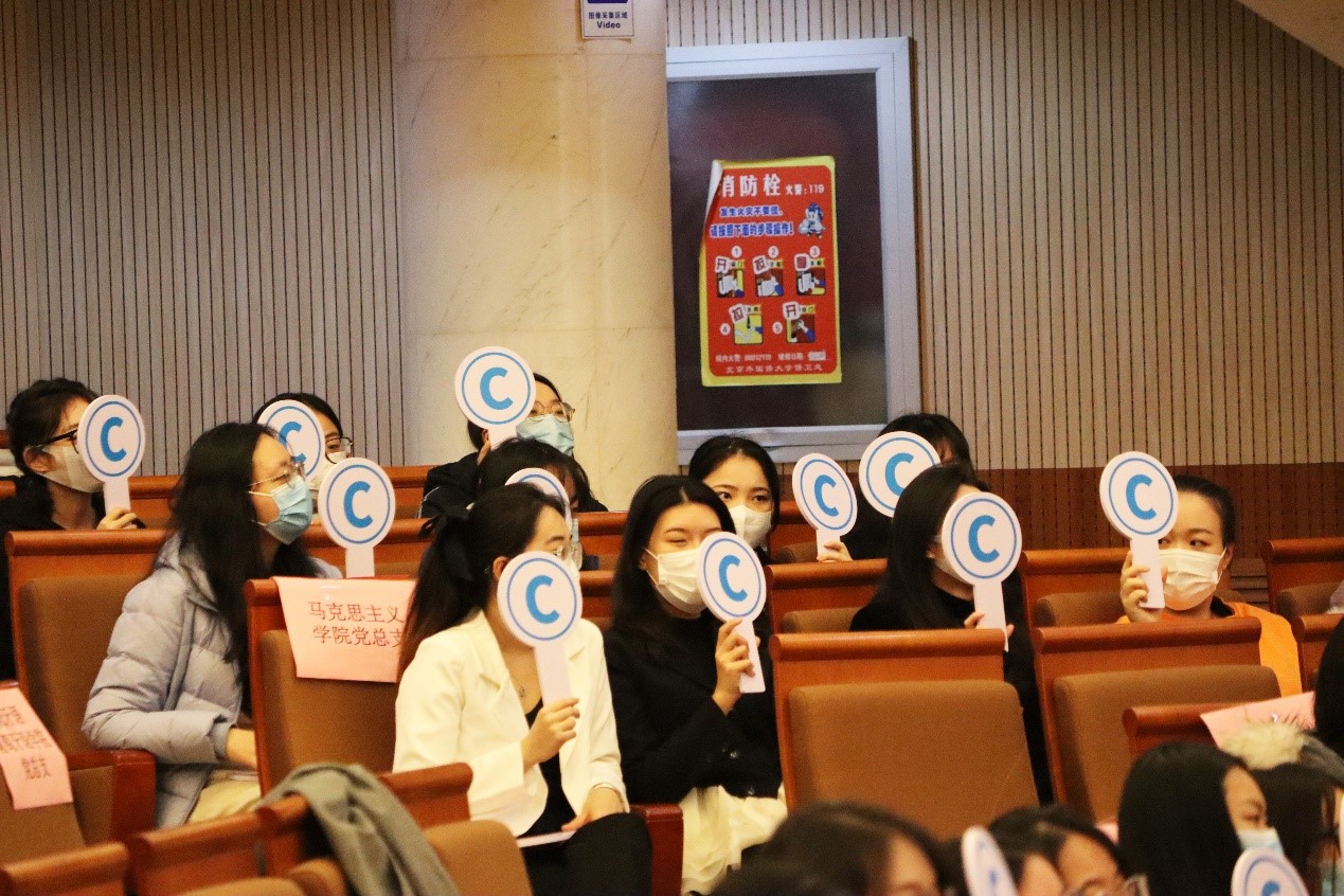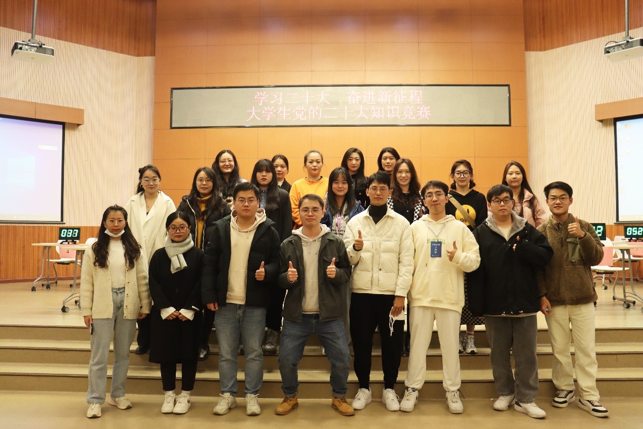 旗帜引领方向,思想凝聚力量。为深入学习宣传贯彻党的二十大精神,引导必赢官网学子学思践悟党的二十大精神,必赢国际437官网于2022年11月23日在东校区阿语楼国会厅顺利举办“学习二十大,奋进新征程”党的二十大知识竞赛(初赛)。本次比赛共派出19支学院代表队参加本次比赛。必赢官网参赛队伍由谢永达、杨铠、伍帅3名参赛选手以及17名亲友团成员共同组成。