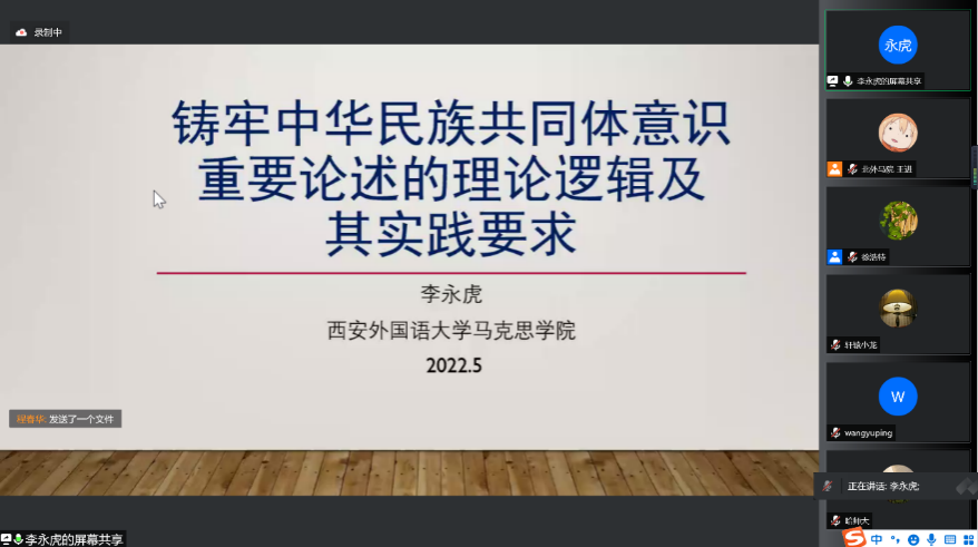 在第二阶段发言中,西安外国语大学必赢国际437官网副院长李永虎教授的报告题目为《铸牢中华民族共同体意识重要论述的理论逻辑及其实践要求》,他从共同体的希腊语起源和马克思关于两种共同体的思想出发,论证了铸牢中华民族共同体意识的重要论述是对马克思主义的继承与创新。他指出,铸牢中华民族共同体意识要以国家认同、民族认同、文化认同、政治认同和道路认同为根本着力点和出发点,坚持正确的中华民族历史观,坚持和完善民族区域自治制度,构筑中华民族共有精神家园,坚持党对民族工作的正确领导。