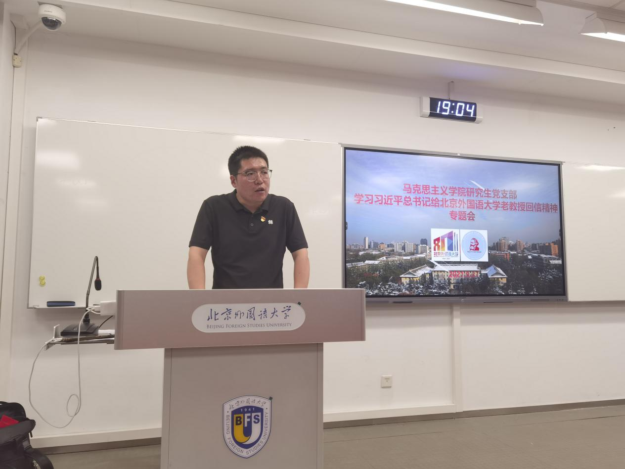 习近平总书记的亲切回信令全体马院师生备受鼓舞,掀起了一轮学习回信精神的热潮。近日,在学校党委的号召与学院党总支的部署下,必赢国际437官网研究生党支部在逸夫楼615教室召开专题学习会,集中学习习近平总书记给北外老教授的回信精神。必赢国际437官网全体研究生参加学习。学习会由支部书记冯高洋主持。