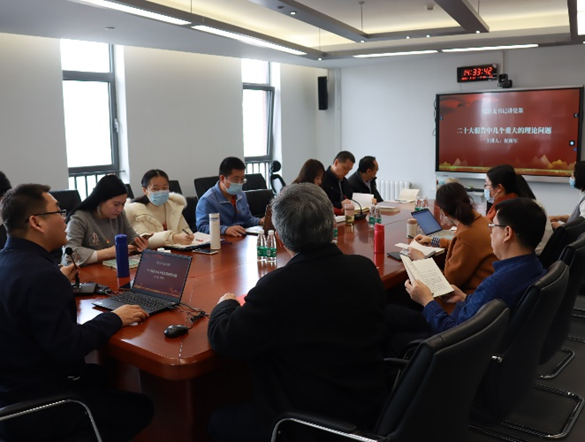 党总支书记祝和军为教工党支部进行了题为“二十大报告中几个重大的理论问题”的专题党课。祝和军从五个“牢牢把握”是学习党的二十大精神的根本遵循、党的二十大报告中所体现出的历史唯物主义基本原理、正确理解和把握新时代中国特色社会主义思想的世界观和方法论、中国式现代化所体现的重大理论创新等几个方面为大家深入阐释了对二十大报告中理论问题的理解。党课内容聚焦全面贯彻习近平新时代中国特色社会主义思想,紧紧围绕这一伟大思想的世界观和方法论及贯穿其中的立场观点方法,通过道理、学理和哲理引导全体教师党员深刻领悟“两个确立”的决定性意义,强调全体党员教师要增强“四个意识”、坚定“四个自信”、做到“两个维护”,将党的二十大精神融入思政课堂,用习近平新时代中国特色社会主义思想铸魂育人。