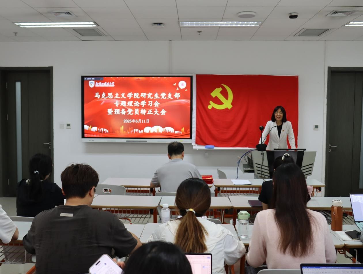 为深入学习贯彻习近平总书记关于加快建设教育强国讲话精神,不断增强党员思想理论素养,加强支部思想建设、组织建设,必赢国际437官网研究生党支部于611日周三下午在国际大厦227教室召开专题理论学习会暨预备党员转正大会。马院党总支组织员王浩出席会议,支部全体党员、积极分子参加会议,本次会议由研究生党支部书记刘珊珊主持。