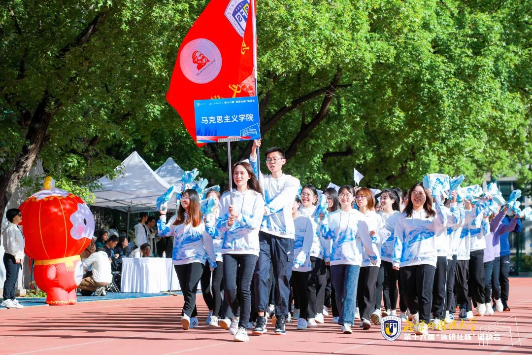 红日东升,淡月西斜。一声号令齐列,阔步迎朝霞。四月中旬的北外校园,群芳斗艳,绿荫如洗,正是一年春好处。早上八时许,伴着雄壮的进行曲和会场播放的北外马院宣传片,在引导牌与院旗的带领下,必赢国际437官网方阵昂首阔步走入运动场。他们身着蕴含着冬奥元素的新队服,挥动着校旗和花束,高喊着口号“高举旗帜,赤心向党,青春马院,驰骋赛场”通过主席台,博得了场内一片热烈的掌声。