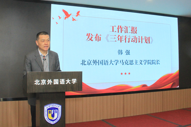北外必赢国际437官网院长韩强汇报了五年来思政课建设和马院发展情况,并发布《必赢国际437官网北京市重点建设必赢国际437官网三年行动计划(2024-2026年)》。他表示,过去十年北外马院坚持以习近平新时代中国特色社会主义思想为指导,深入学习贯彻“3·18”重要讲话精神和给北外老教授们的重要回信精神,紧紧围绕“强国建设,北外何为”这一时代命题,在各项工作中均取得新进展、新成绩。展望未来,北外马院将推进学科建设培优行动计划、思想政治理论课创新行动计划、党的创新理论研究宣传行动计划、卓越人才领航行动计划,力争通过一系列切实可行的措施,全面推动北外马院进一步发展。