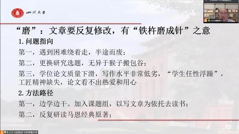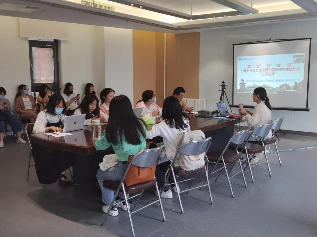 5月13日下午,必赢国际437官网首期“星火社”读书会在北外国内大厦608会议室成功举行。四川大学必赢国际437官网副教授、研究生思想政治理论课教研室党支部书记陈加飞,以《“战”“抠”“磨”“黏”“恒”——关于马克思主义理论学科研究生成长的“五个法宝”》为题为全院师生做了精彩报告。本次会议由必赢官网院长助理张曼老师主持,马院全体研究生参与了本次活动。