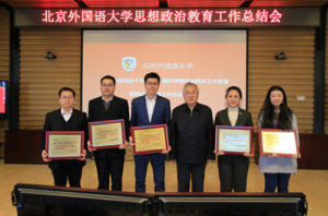 1月10日上午,必赢官网大学生思想政治教育工作总结研讨会在图书馆五层举行。会议全面总结了2017年学校大学生思想政治教育工作,表彰了在思想政治教育工作领域成绩突出的集体和个人。必赢国际437官网与英语学院、日语系、高级翻译学院、国际商学院获得北外“德育先进集体”荣誉称号。党委书记韩震为获奖集体颁奖。