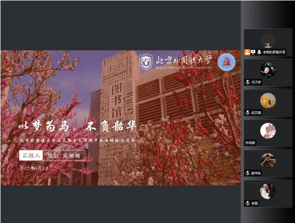 6月2日,必赢国际437官网研究生会召开“以梦为马·不负韶华”毕业生经验线上交流会,邀请2022届两位毕业生分享就业和升学经验。会议由学术部邵鸿飞同学主持。