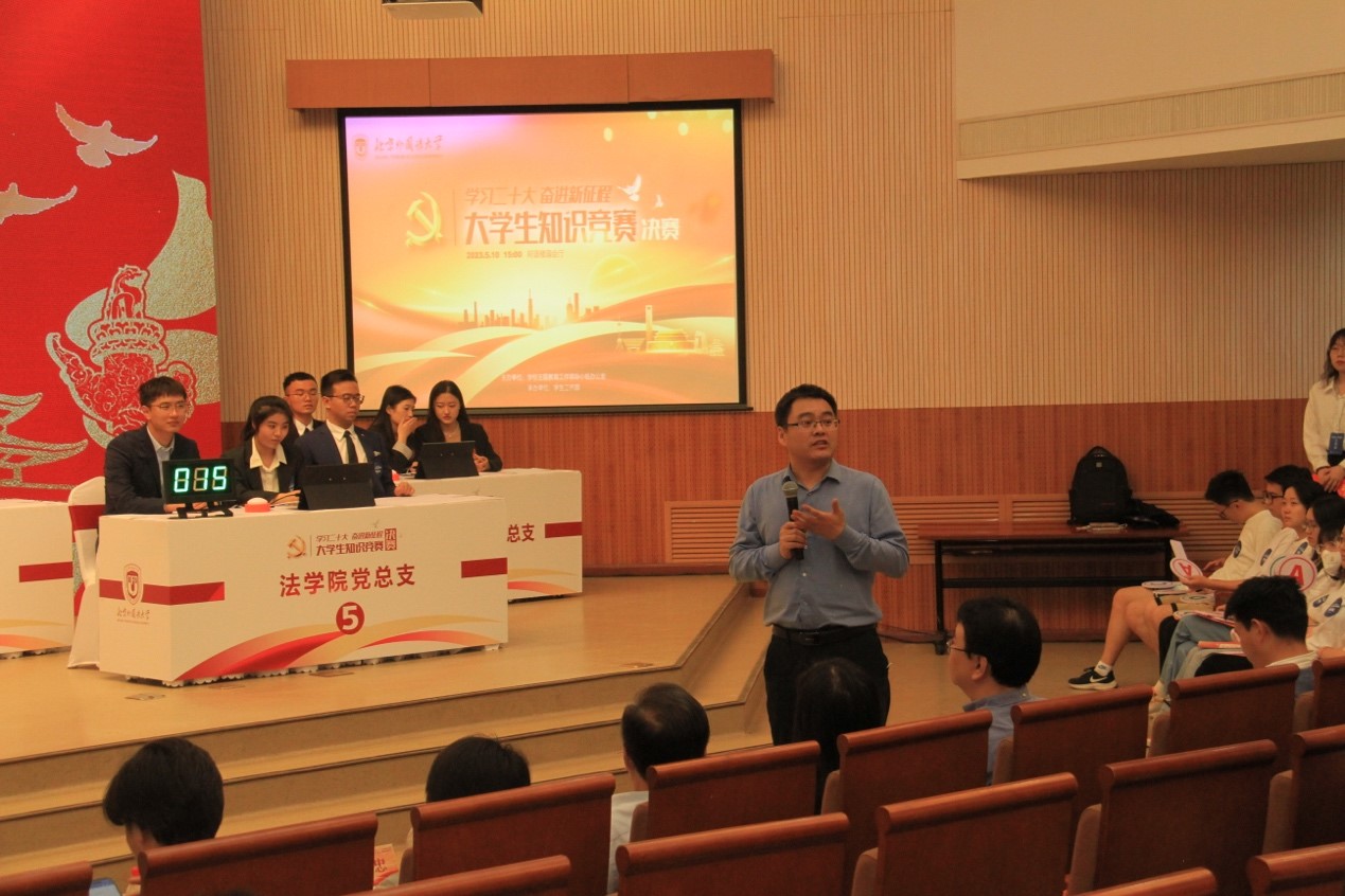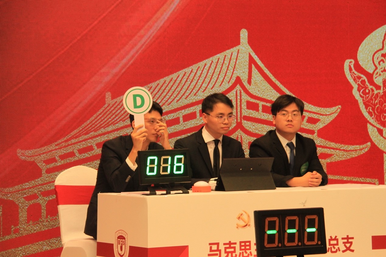 必赢官网党总支书记祝和军在比赛中针对部分题目和选手表现做出点评。祝和军书记肯定了参赛选手及亲友团对二十大报告文本的掌握程度,并针对“如何深入学习二十大精神”“如何透彻理解马克思主义”等问题提出相关建议。