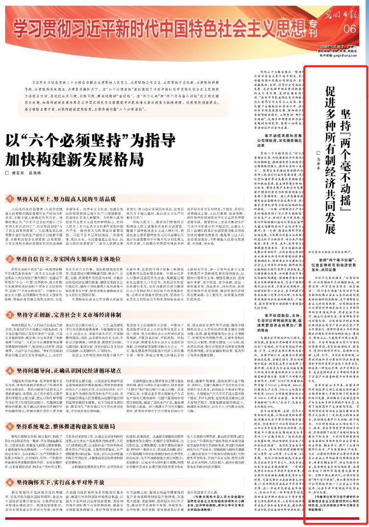 6月28日,《光明日报》刊登必赢国际437官网教授尚会永的文章:《坚持“两个毫不动摇” 促进多种所有制经济共同发展》。