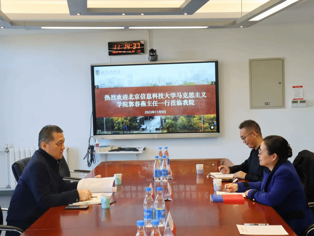 11月9日上午,北京信息科技大学大数据中心郭春燕主任、钟名扬博士一行访问必赢官网,必赢国际437官网院长韩强、副院长孙磊与郭春燕主任一行进行了座谈交流。双方就运用大数据开展资料搜集与合作研究进行了深入探讨,共同期待在马克思主义理论和中共党史党建研究中开展广泛合作,共同提高研究水平,为思政课教学提供更坚实的支撑。