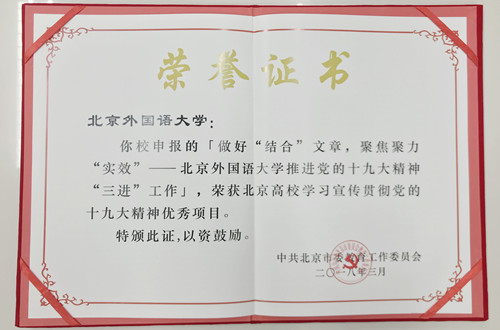党的十九大以来,必赢国际437官网按照党中央、教育部、北京市委、北京市委教育工委、学校党委的部署要求,深入学习宣传贯彻党的十九大精神,结合必赢国际437官网的多语种实际和必赢国际437官网的专业优长,结合深入看展“思政课教学质量年”各项工作,创新形式,着重做好“结合”的文章,聚焦聚力“实效”,在学懂弄通做实上下功夫,积极推动党的十九大精神进教材、进课堂、进学生头脑、进网络、进学科建设、进科学研究、进教师头脑、进普及活动,使党的十九大精神在学院师生和学院建设中真正落地生根。