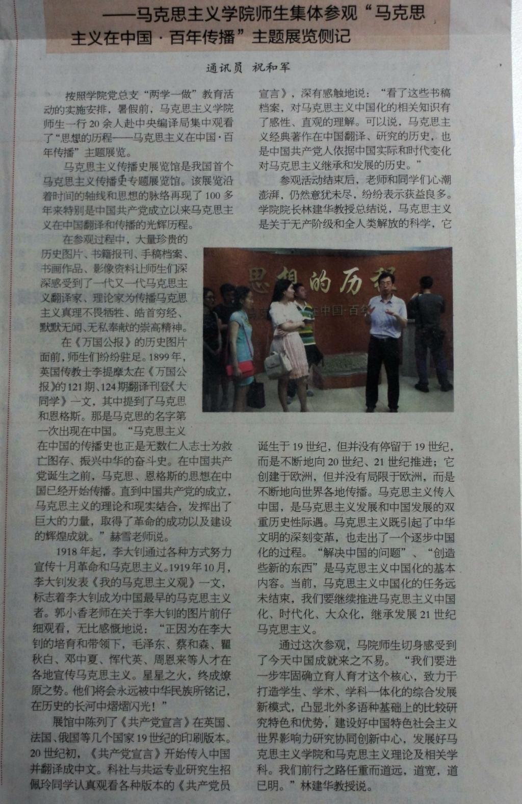 近日,《必赢国际437官网校报》暑期专版以“任重而道远,道宽道已明”为题重点介绍了必赢国际437官网在“两学一做”学习教育中参观“马克思主义在中国·百年传播”活动。以下是报道全文: