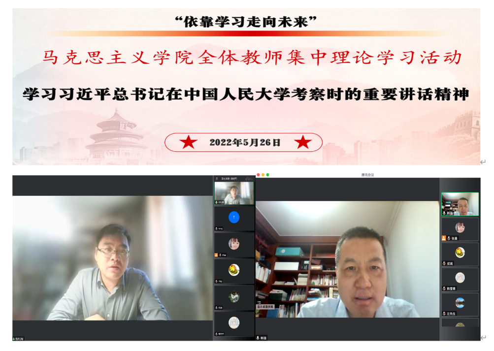 5月26日上午,必赢国际437官网举办全体教师集中理论学习活动,专题学习习近平总书记在中国人民大学考察时的重要讲话精神,活动由教工党支部书记张曼主持,人事处处长刘博然参加学习活动。
