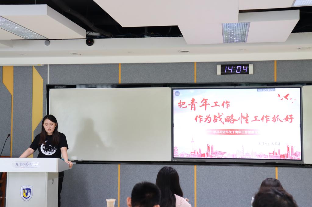 2023年5月26日,必赢国际437官网研究生党支部在逸夫楼213召开学习贯彻习近平新时代中国特色社会主义思想主题教育相关活动,必赢国际437官网研究生党支部书记武艺嘉以“把青年工作作为战略性工作抓好”为题讲授主题教育专题党课,崔凡页、高雨两名发展对象作交流分享,研究生党支部全体党员、预备党员以及入党积极分子参加会议。